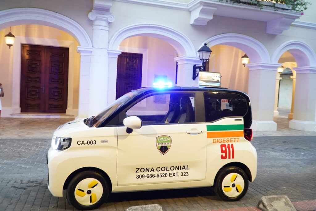 El director de la Dirección General de Seguridad de Tránsito y Transporte Terrestre (DIGESETT), general Francisco Osoria de la Cruz, P.N., anunció hoy la implementación de un carro eléctrico para seguir mejorando la seguridad vial en la emblemática Zona Colonial. Esta incorporación de vehículo eléctrico se suma a las patinetas eléctricas, con la finalidad de reforzar la vigilancia y el control del tránsito en esta área histórica y turística del país.